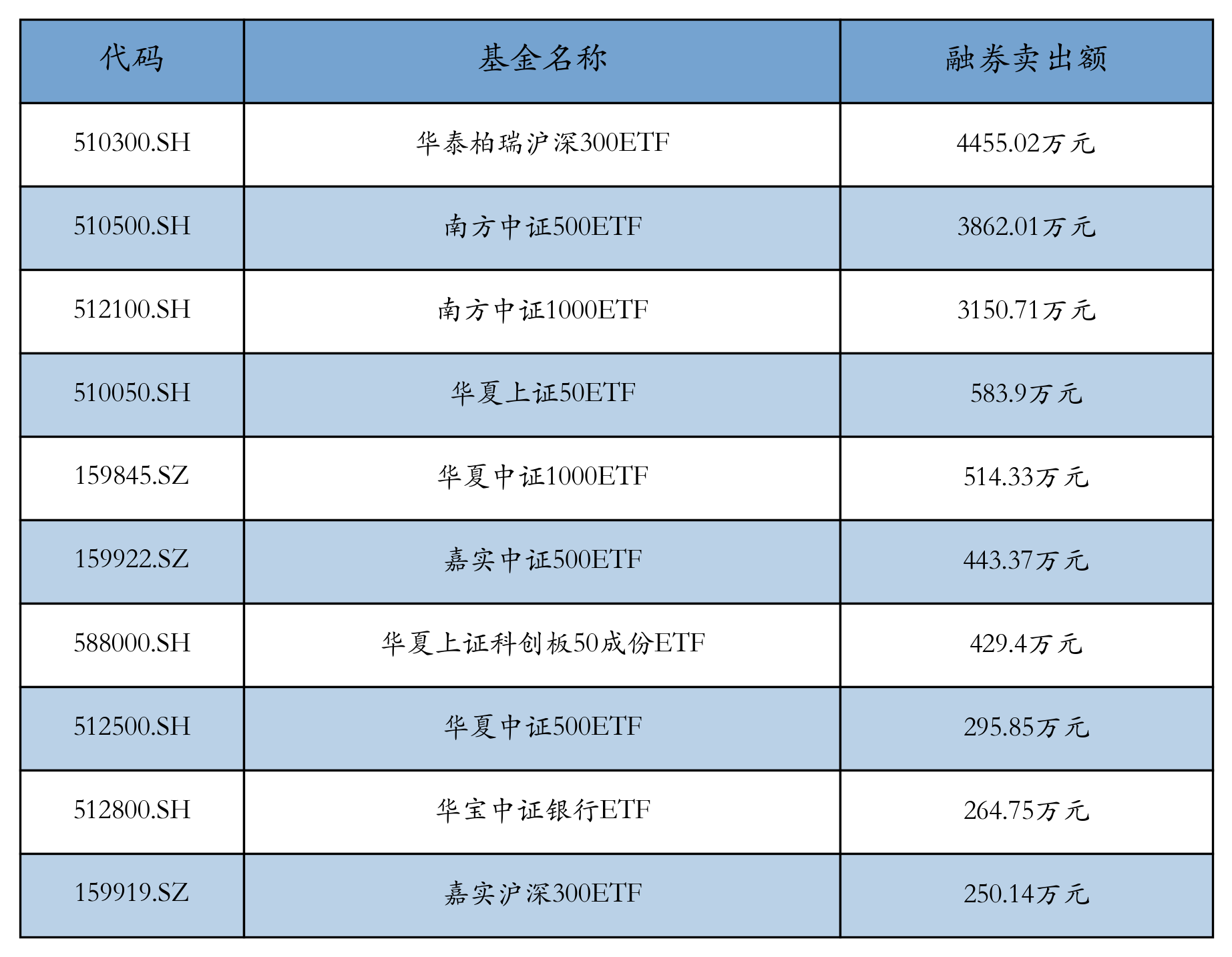 ETF融券卖出额领先