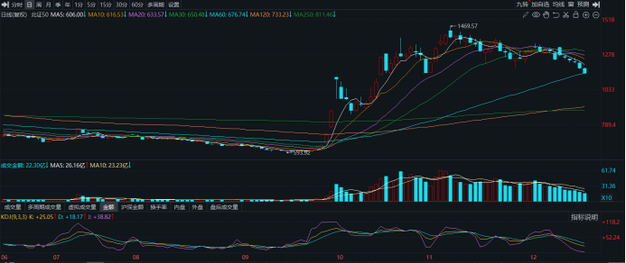今日(12月18日),北证50指数再度走低,截至收盘已连续9日收阴,自11月8日高点至今,累计最大回撤幅度高达22.9%,点位已回落至10月中旬水平,创下近2个月新低。