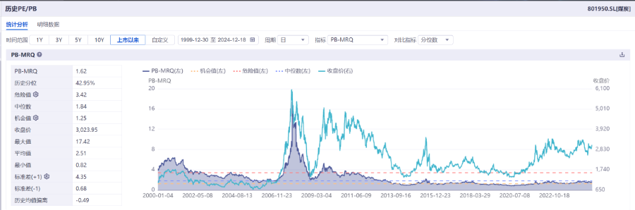 截至12月18日,煤炭板块(申万一级)市净率PB(MRQ)为1.62倍,低于中位数1.84倍,仍处于较低水平。同时,煤炭板块PE同样处于较低水平,当日PE(剔除负数)为12.30倍,低于中位数14.33倍。