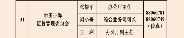 在名单中,中国证监会作为金融监管的重要部门,其新闻发言人团队备受瞩目。据悉,证监会新闻发言人团队共有三人,分别是证监会办公厅主任张望军、证监会综合业务司司长周小舟以及证监会办公厅副主任王利。这三位发言人将肩负起向公众传递证监会最新政策、市场动态及监管信息的重任。
