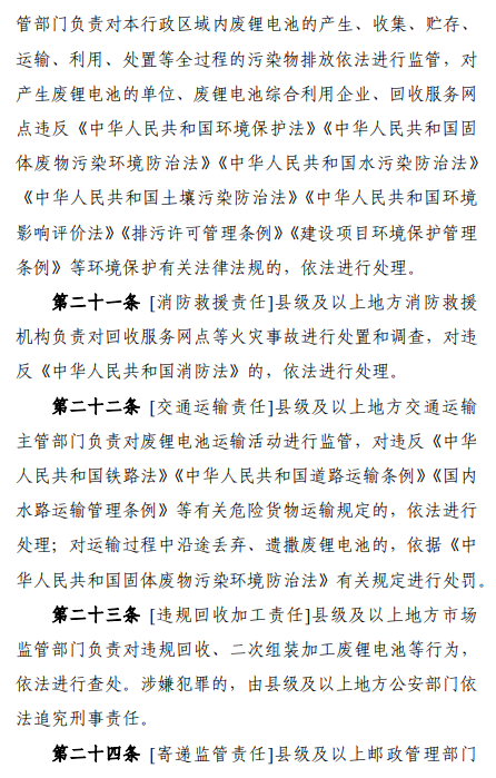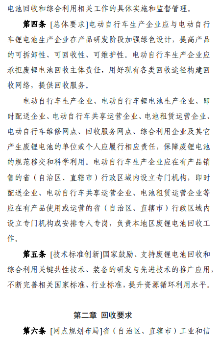 该管理办法明确要求电动自行车生产企业、即时配送企业、电动自行车共享运营企业及电池租赁运营企业,在其产品销售或使用的省(自治区、直辖市)行政区域内,设立专门机构或安排专人,专门负责废锂电池的回收工作。此举将确保废锂电池能够得到有效管理和及时回收。