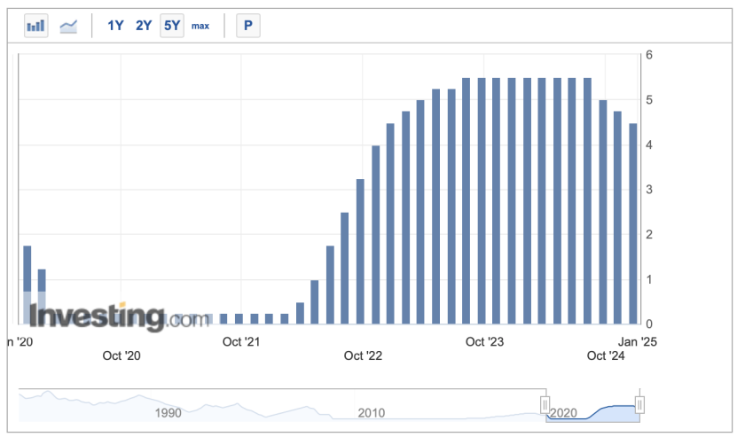 美联储于北京时间12月19日凌晨3点宣布降息25个基点,将联邦基金利率的目标区间从4.5%至4.75%下调至4.25%至4.50%,这是继2024年9月启动宽松周期后的连续第三次降息,累计降息幅度达到100个基点。