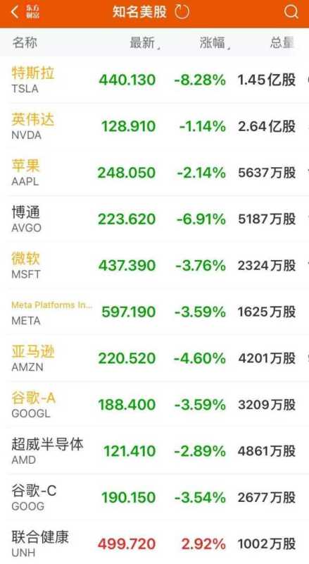 受多重利空因素影响,美股大型科技股全线下跌。其中,特斯拉跌幅超过8%,市值一夜蒸发约9625亿元人民币;英特尔跌幅超过5%,亚马逊跌幅超过4%,谷歌、Meta、微软、奈飞跌幅均超过3%,苹果、英伟达跌幅也分别超过2%和1%。