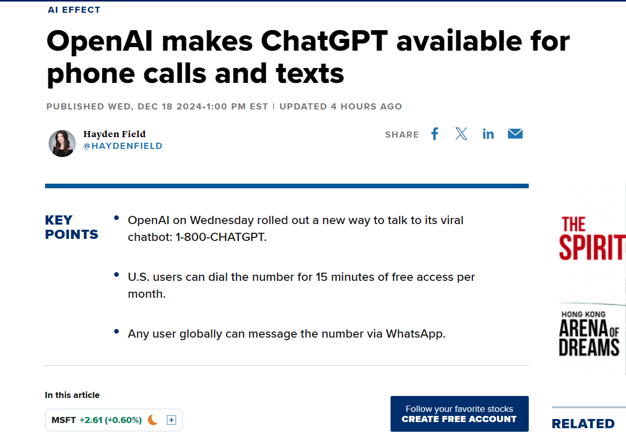 OpenAI推出1-800-CHATGPT,提供新聊天方式