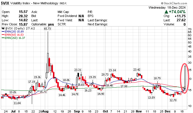 美股“恐慌指数”VIX在一天内暴涨74%,创下四个月新高28.32,单日涨幅甚至超过了8月的“黑色星期一”。道指和标普500指数均创下自8月5日以来的最大单日百分比跌幅,标普500指数更是经历了2001年以来跌幅最大的美联储议息日行情。