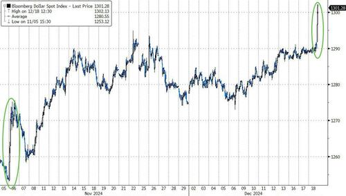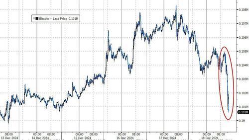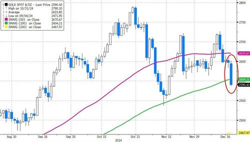 美元成为周三市场的唯一赢家,彭博美元指数涨幅扩大至4%,达到2020年新冠疫情后那轮升势的最高位。黄金价格失守2600美元关口,比特币俯冲向10万美元大关。