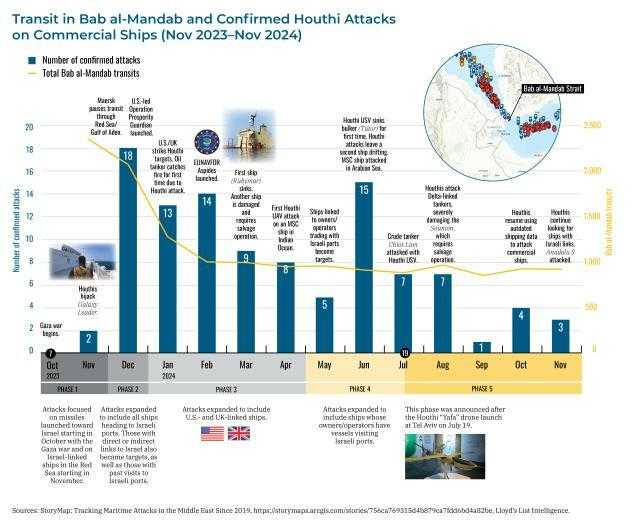 红海航运危机已持续逾一年。自2023年11月以来,为配合哈马斯作战,也门胡塞武装突然扩大打击范围,多次袭击红海及附近水域目标,不仅加剧了中东局势紧张,也波及了国际海运。红海航道作为全球海运线路上的重要航道,与苏伊士运河共同构成“欧亚水上通道”,是世界上最繁忙的水道之一,此前全球近12%的贸易都要经过这里。根据Washington Institute本周发布的一份报告统计,胡塞武装今年已至少对100艘商船和军舰发动了袭击。