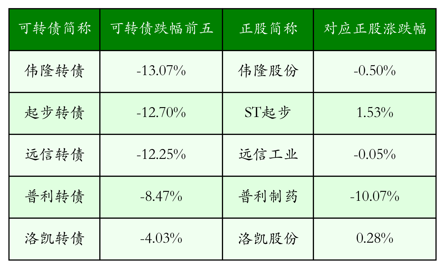 此外,市场也存在一定的下跌风险,有11只可转债对应的正股跌幅超过了5%,但并未出现正股跌停的情况。