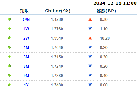 货币市场利率(12月18日)
