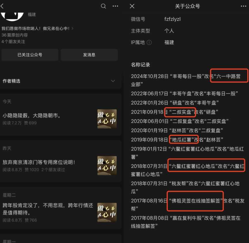 以“六一中路营业部”为例,该账号自今年11月9日起持续发布股市文章,短短两个月内平均阅读量超过8万,多次达到10w+。然而,该账号并非六一中路本人的官方账号,而是从2017年起便不断变更名称的假冒账号。