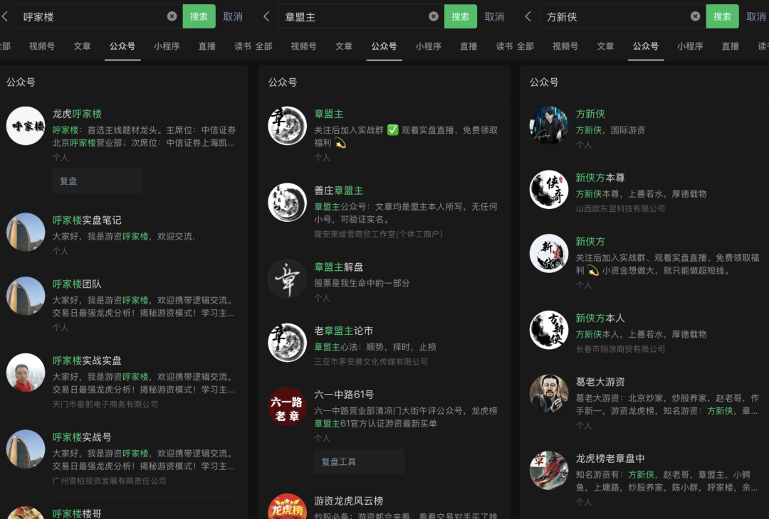 蓝鲸新闻12月20日讯(记者陆鹏鹏)近期,社交媒体上涌现出一系列假冒知名游资账号,这些账号通过模仿知名游资如六一中路、92科比等的风格,开设公众号等手段,诱导股民落入陷阱。一篇文章百人打赏,两个月内阅读量突破10万+,最终却将股民引入“杀猪盘”。