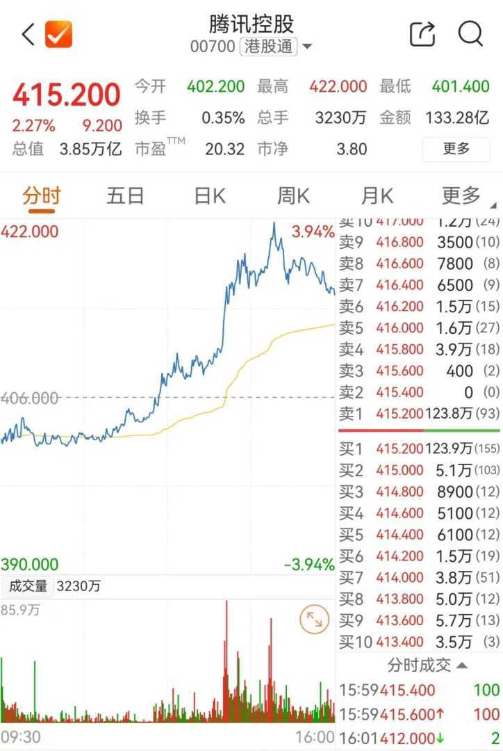 苹果洽谈AI整合,腾讯股价上涨,算力股涨停