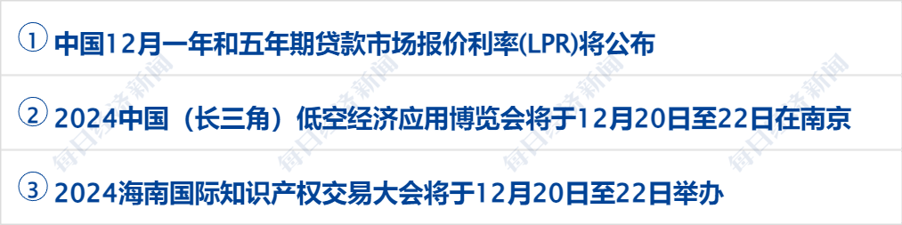 美国财政部宣布对与伊朗石油贸易有关的4个实体实施制裁;瑞典央行宣布从2025年1月8日起将基准利率下调25个基点至2.5%。