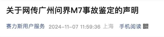 值得注意的是,南粤评估正是广州问界M7交通事故中鉴定报告的出具机构。今年7月6日,一辆问界M7在广州发生严重交通事故,11月车主公布了一份南粤评估的鉴定报告,报告指出事故前5秒驾驶员踩刹车踏板失灵,油门发卡导致踏板100%打开,且自动紧急制动功能未响应,行车记录仪数据被人为删除,赛力斯出具的事故报告数据被人为修改。