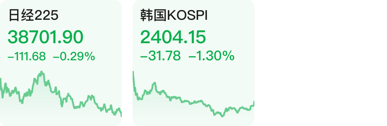 日经225指数收跌0.29%,韩国KOSPI指数则下跌1.3%。