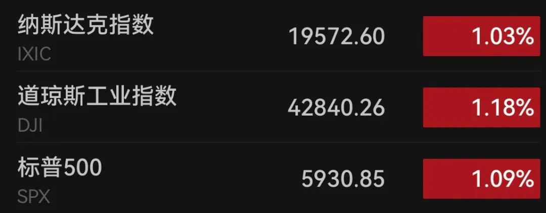 美股当天低开高走,三大指数收盘均涨超1%。尽管道指本周累计下跌2.25%,录得周线三连跌,但标普500指数和纳指也均创下1个月以来最大单周跌幅。英伟达领涨大型科技股,涨幅超3%;诺和诺德因减肥药试验结果不及预期而大跌近18%。比特币则跌破93000美元,日内跌幅近4%。