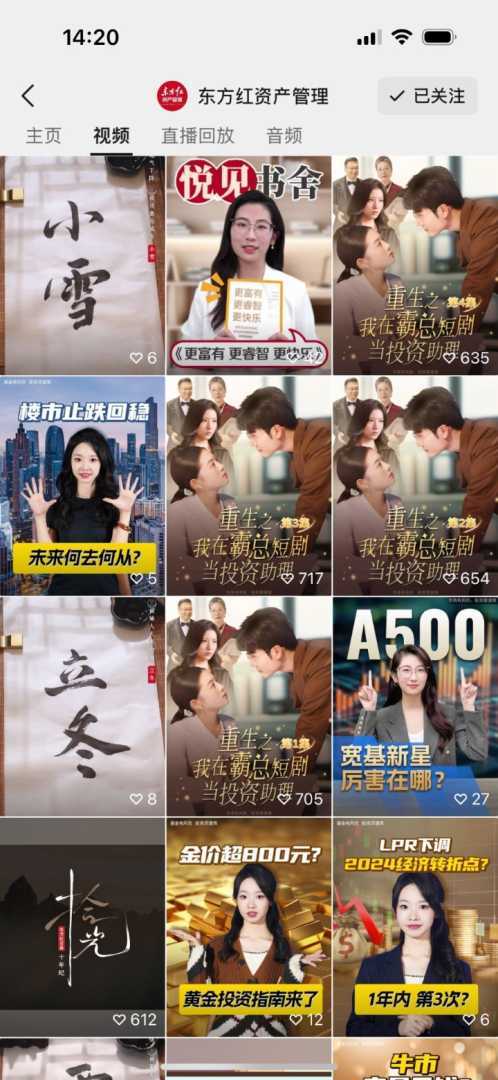 近期,公募基金行业掀起了一股投教短剧的新风潮,东方红资管推出的《重生之我在霸总短剧当投资助理》和长盛基金的《穿书后帮老公夺回集团》系列短剧,在网络上引发了广泛关注。