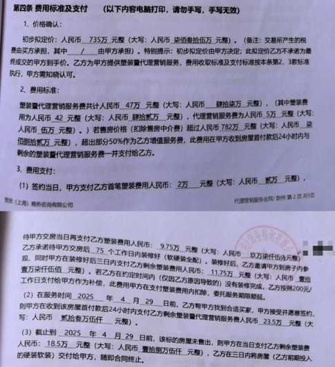 宋女士一家便是其中之一。他们位于宝山区的一套118.8平方米的房子,挂牌价从870万降至735万,却仍未成交。为了尽快出售,宋女士的儿子与塑房(上海)商务咨询有限公司签订了合同,将房子交由塑房公司进行改造装修及代理营销。然而,这份合同却给宋女士带来了大半年的困扰,2万元装修首付款打了水漂。
