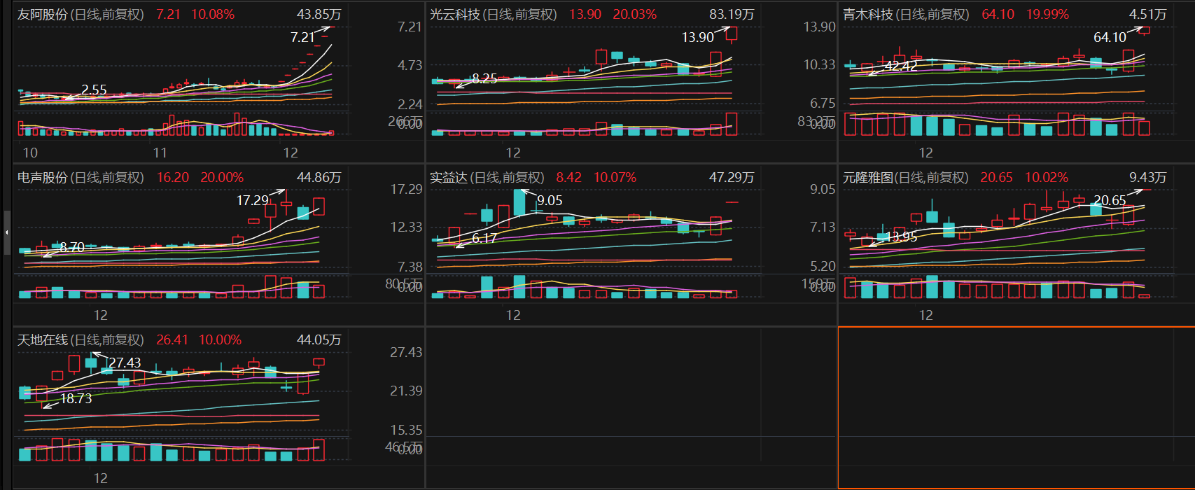微信小店近期上线了“送礼物”功能,这一新功能迅速在市场上引发了热烈反响,带动了相关概念股的涨停潮。线上拥有“友阿海外购”、“友阿微店”、“友阿购”等购物平台的友阿股份,周五收盘时斩获了八连板,成为市场中的佼佼者。同时,光云科技、青木科技、电声股份等多家公司也因与微信小店的合作而连续涨停。
