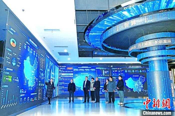 相关人员在参观“东数西算”产业园区枢纽资源调度区算力调度中心展厅,俄少飞摄。