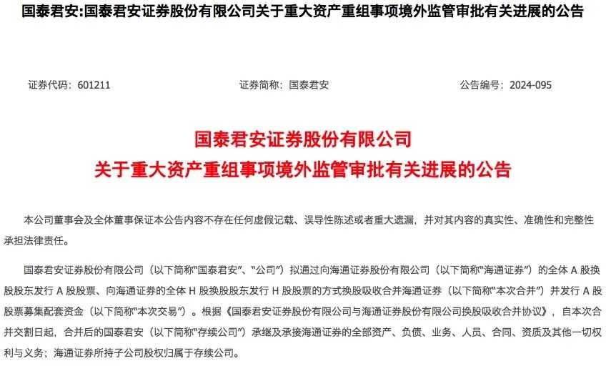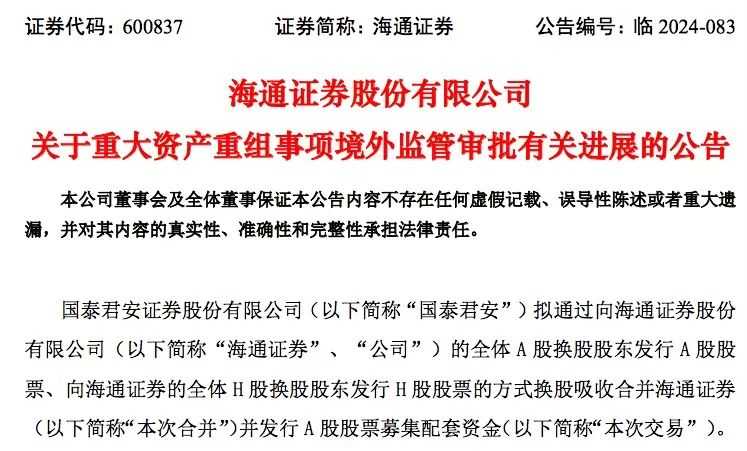 国泰君安与海通证券合并加速推进,香港证监会已批准