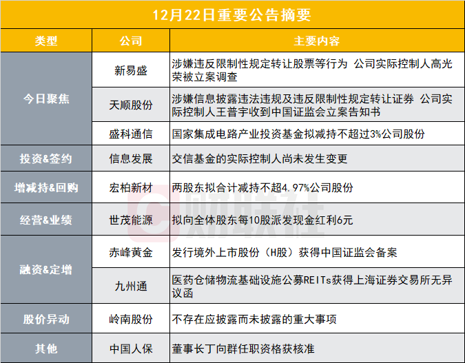 天威视讯公告,公司及子公司可享受免征企业所得税优惠政策,预计减少2024年度所得税费用约378万元。中国人保公告,董事长丁向群任职资格获核准,自2024年12月20日起生效。