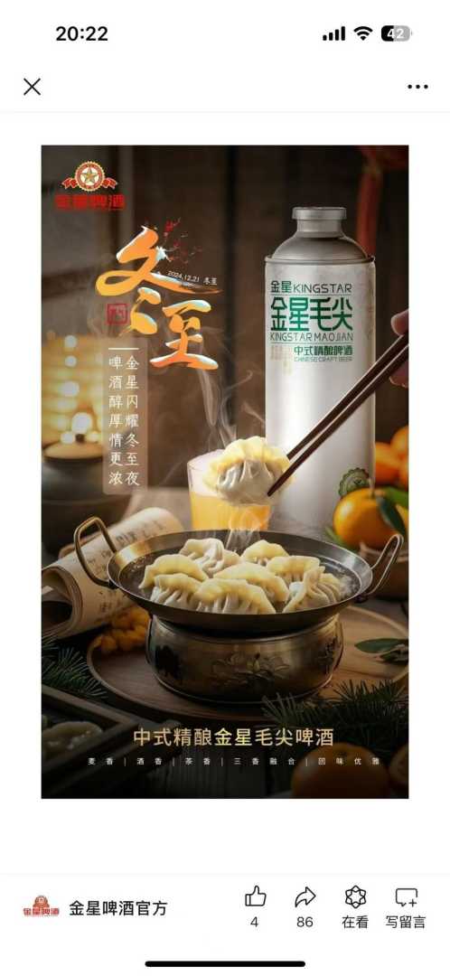 值得注意的是,在联合公告发布的前一天(12月21日),金星啤酒官方微信号的产品宣传图已经更改为“金星毛尖中国精酿啤酒”。蓝鲸新闻记者与金星啤酒方面确认,“金星毛尖中国精酿啤酒”即为之前的“信阳毛尖中式精酿啤酒”,并将继续生产销售。