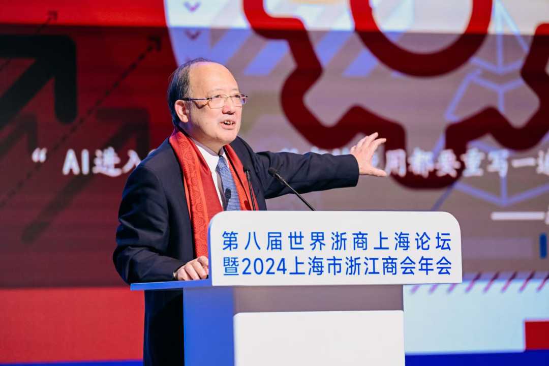 陈十一在第八届世界浙商上海论坛上发表主旨演讲,表示工业软件结合AI、数字孪生技术正成为发展新质生产力的关键,并预测了AI与制造业融合的五大趋势。