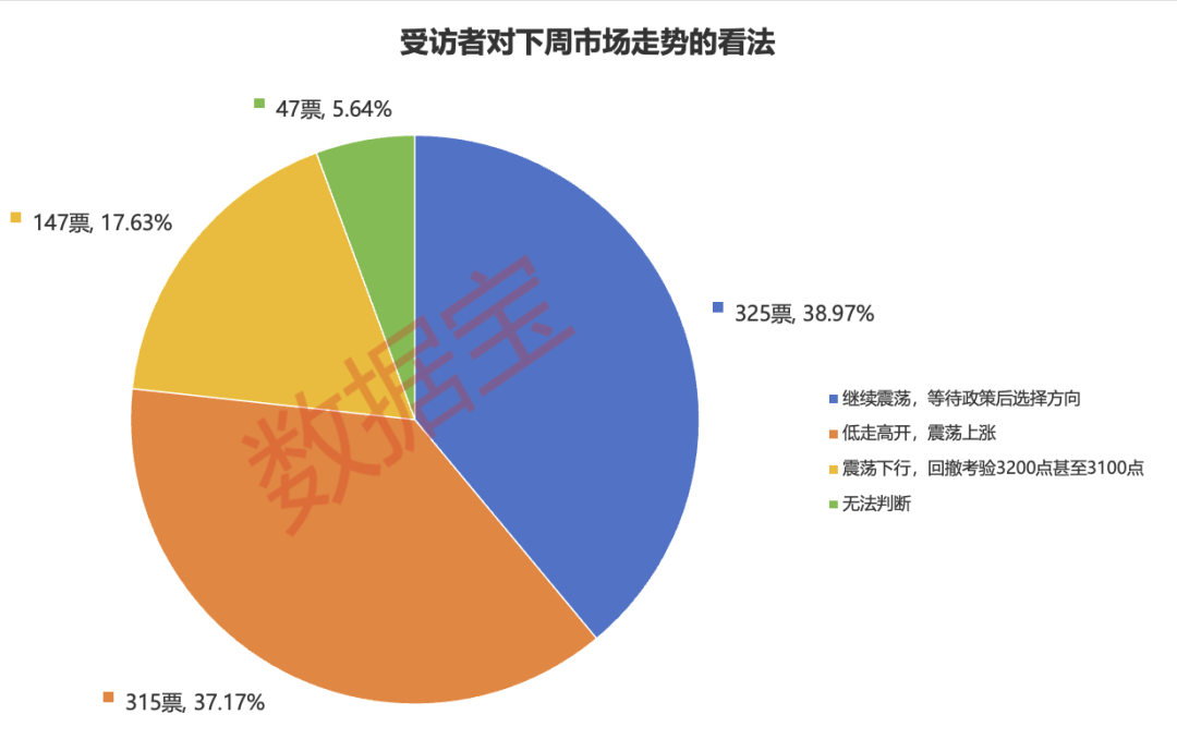 认为市场将“继续震荡,等待政策后选择方向”的受访者占比38.97%,较上周大幅增加8个百分点。