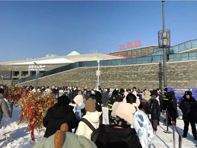 尽管外界热议纷纷,游客热情不减。许多游客提前数小时排队,有游客凌晨3点已到园区外,早上6点便大排长龙。由于排队人数过多,园区提前开园。热门项目“超级冰滑梯”更是吸引了大量游客,尽管滑梯数量增至24条,增设防风暖廊,但排队时间仍需数小时,甚至有游客因排队混乱而大喊“退票”。