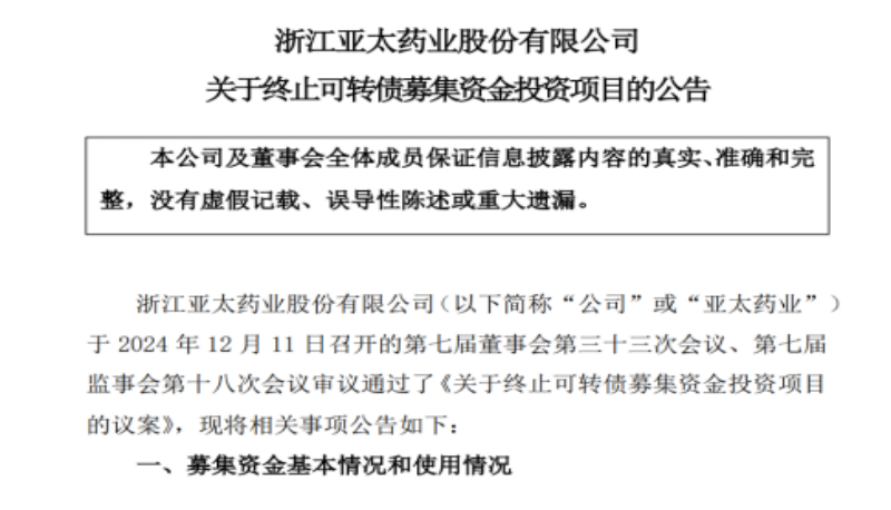 其中,亚太药业于12月12日发布公告,宣布终止此前发行的可转债(亚药转债)对应的募集资金投资项目,涉及金额高达9.53亿元,尚未使用的募集资金余额为6.89亿元。该笔资金将优先用于可转债回售、赎回,并在摘牌后全部用于永久补充流动资金。
