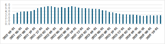 图 2021-2024 美国核心个人消费成本指数(PCE)变化趋势