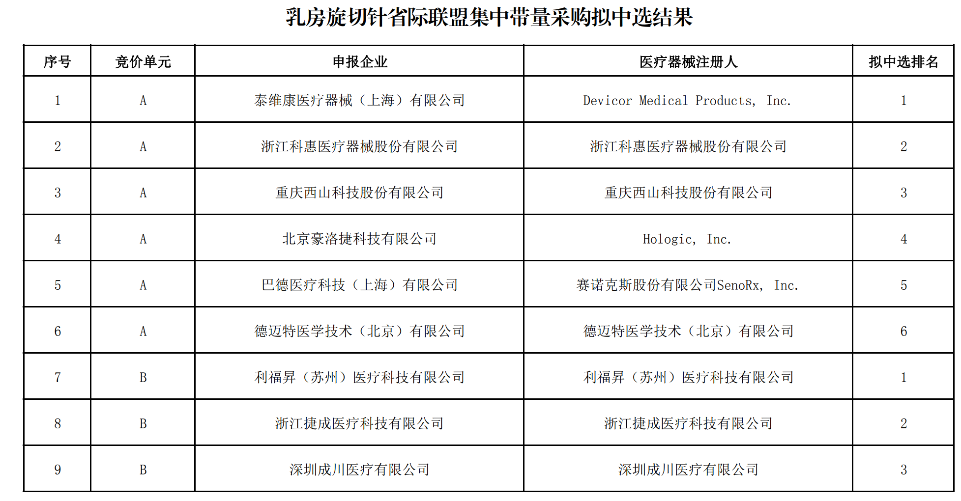 通过首轮竞价中选的9家企业,共同为乳房旋切针的降价做出了贡献。