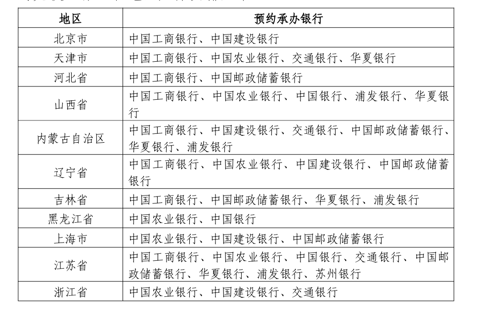 此外,各地预约承办银行也已公布,客户可根据所在地区选择合适的银行进行预约。