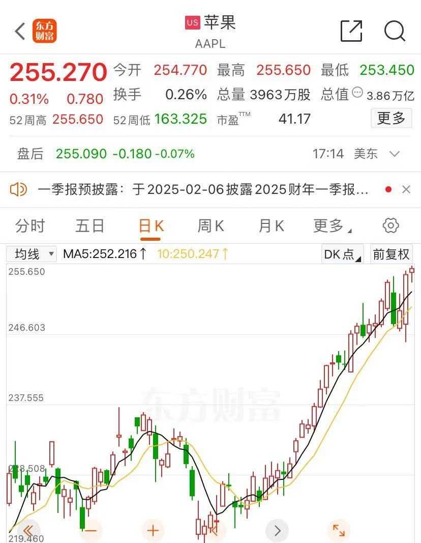 科技巨头们纷纷贡献正向力量,英伟达与英特尔股价涨幅均超过3%,苹果更是持续刷新盘中及收盘纪录,总市值成功站上3.86万亿美元新台阶。