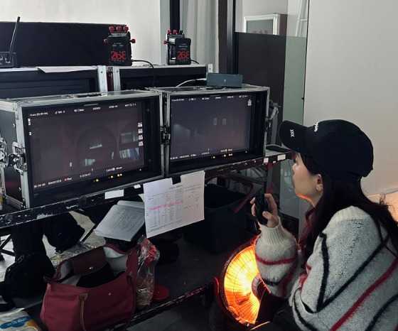 敖昕正检查着拍摄画面中演员的表演状态 摄影:范易成