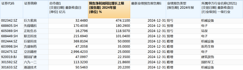 多家上市公司发布2024年业绩预告,机械设备和电子行业表现亮眼