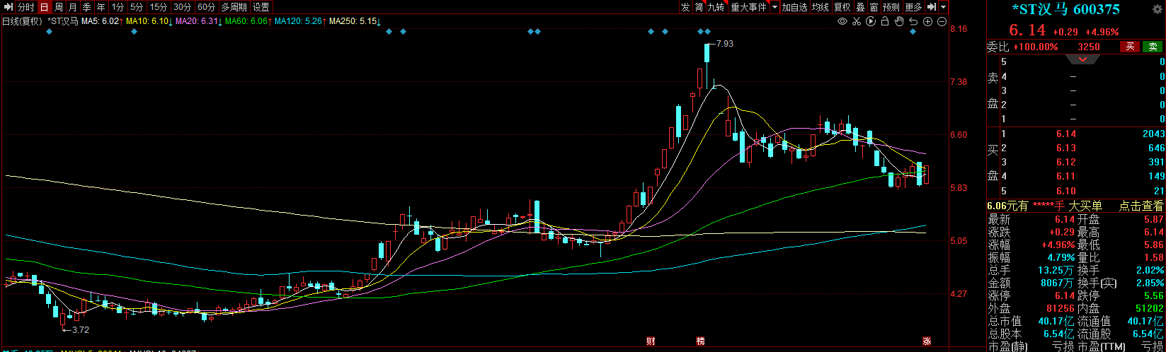 *ST汉马提醒,若公司或其子公司不执行或不能执行重整计划,将面临破产宣告及股票终止上市的风险。因2023年度经审计的期末归属于上市公司股东的净资产为负值,公司已被实施退市风险警示。