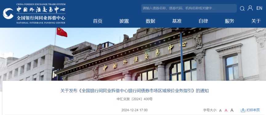 12月24日,全国银行间同业拆借中心正式发布了《银行间债券市场区域报价业务指引》。该指引旨在支持金融机构深耕本土,服务实体经济,并有效增强地方政府债及信用债的市场流动性。