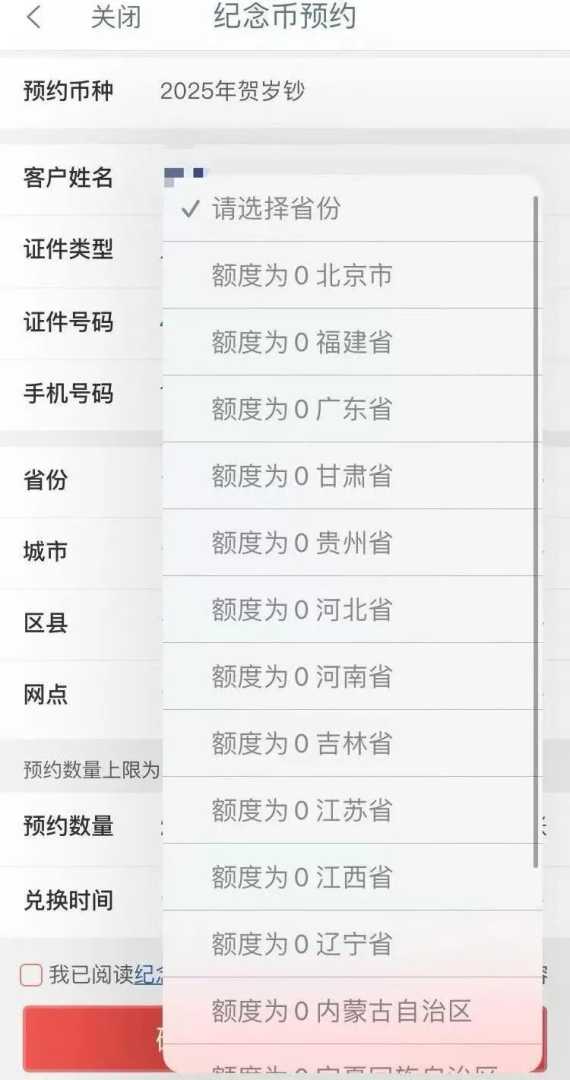 23日晚10时05分,该银行的所有纪念币均被预约完毕,同时,中国农业银行和中国工商银行纪念币预约页面均显示,广东省各大网点的纪念币剩余数量为0。