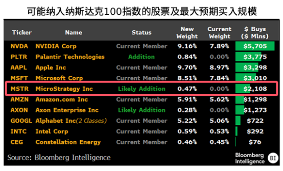 MicroStrategy正式被纳入纳斯达克100指数,影响19只QDII指数基金,指数基金将首次大规模被动买入虚拟货币相关资产,总规模超700亿元人民币。