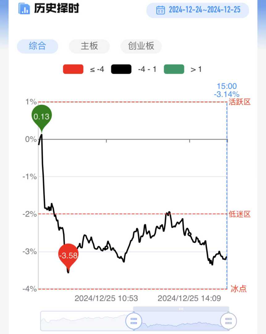 财联社12月25日讯,今日市场全天呈现震荡调整态势,大小指数再度分化,微盘股指数大幅下跌超过3%。沪深两市全天成交额为1.28万亿,较前一交易日减少了263亿,创下9月27日以来的新低。盘面上,热点散乱,多数题材冲高后回落,个股普遍下跌,全市场超过4400只个股收跌,逾60只个股跌停。