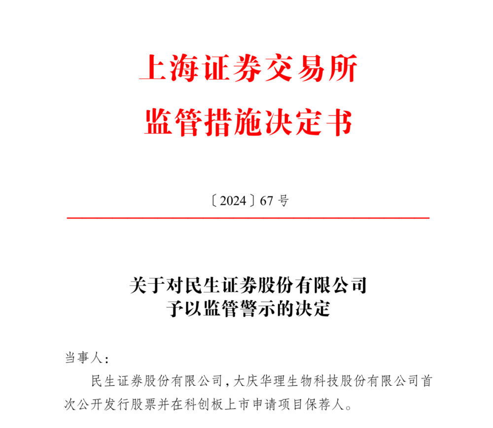 华理生物IPO撤回后遭监管追责,民生证券等中介机构受罚