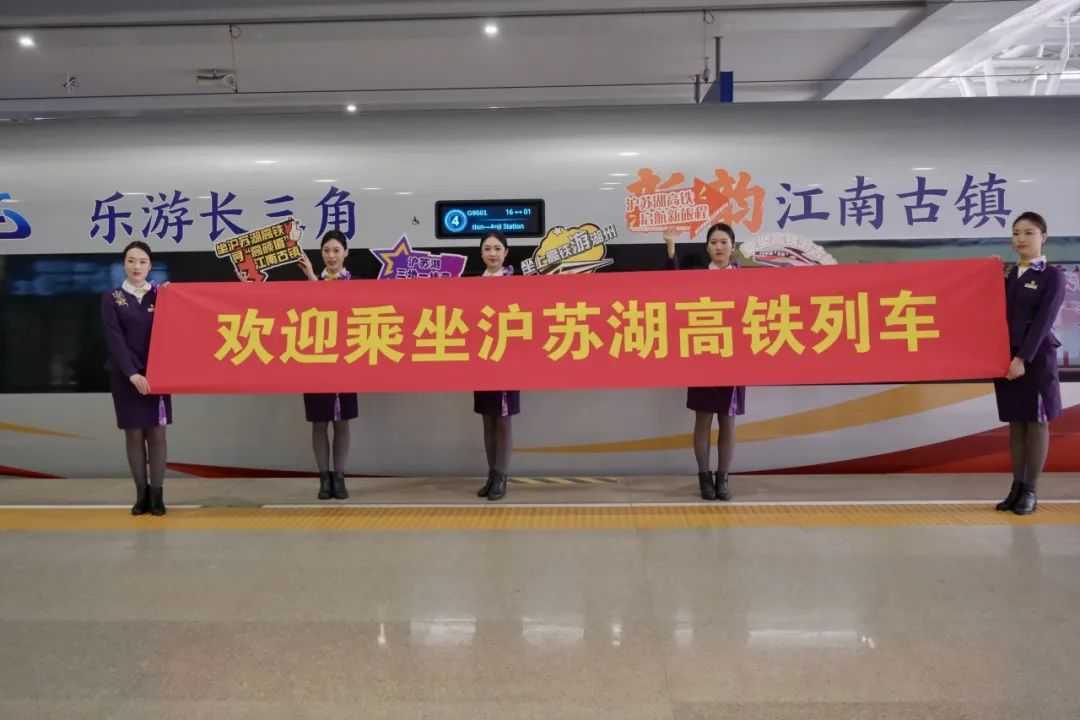 上午9时45分,湖州东-上海虹桥G9508次首发列车从湖州东站启程,随后上海虹桥-安吉G9501/0次、苏州南-张家港G9502次分别从上海虹桥和苏州南站出发,沪苏湖高铁正式投入运营。上午10时,首趟“乐游长三角·新韵江南古镇”旅游列车从上海虹桥出发,近百名游客踏上冬日江南古镇之旅。