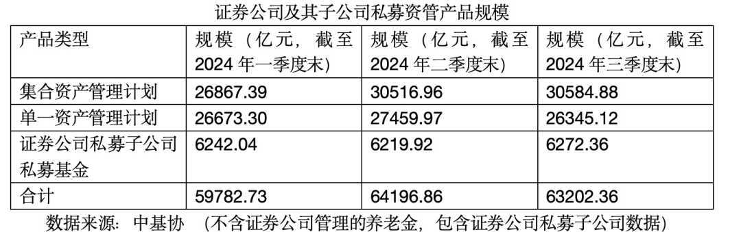在券商资管压降“通道”业务规模的过程中,主动管理产品规模占比持续提升。截至2024年三季度末,券商集合资产管理计划规模占比约48%,较一年前显著提升。