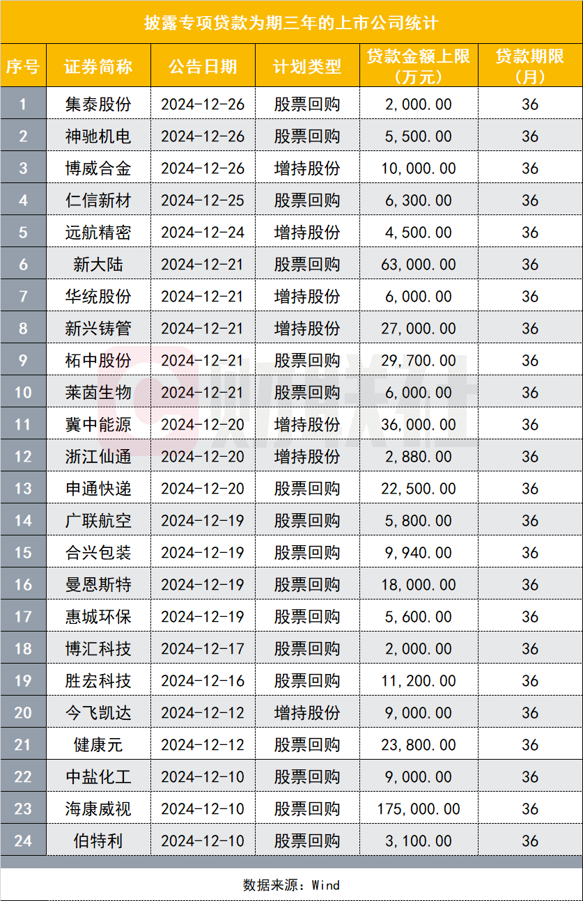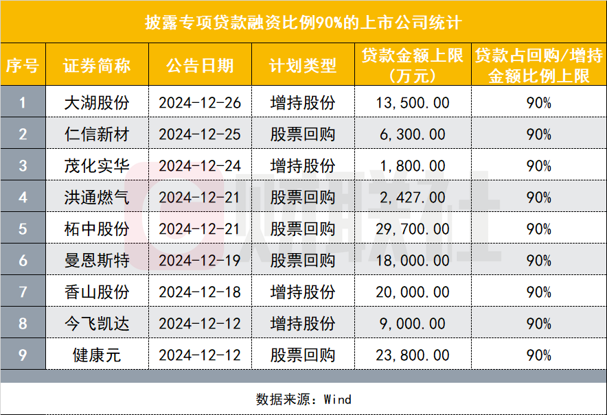 具体来看,今飞凯达(002863.SZ)和健康元(600380.SH)等公司已迅速响应,披露专项贷款融资比例上限为90%。同时,24家公司明确贷款期限为三年,较之前显著增加,显示出新细则对上市公司和主要股东回购增持的积极推动作用。
