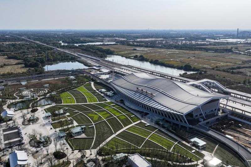 沪苏湖高铁设计时速高达350公里,全长164公里,它不仅是长三角高铁网中唯一一次性贯通江浙沪的通道,还横穿了长三角生态绿色一体化发展示范区。此外,沪苏湖高铁与在建的南通至宁波高铁以及未来的盐泰锡常宜铁路等,有望共同形成“环太湖高铁圈”。