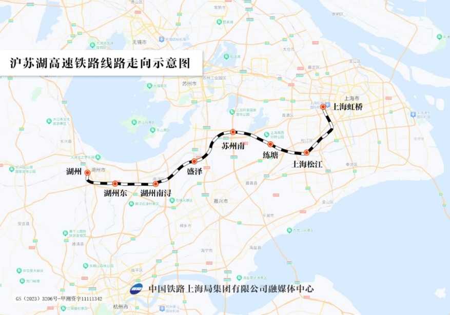 沪苏湖高铁于12月26日正式通车运营,全长约163公里,设计时速350公里,由上海虹桥站引出,途经苏州,终至湖州。这条高铁线路在沪苏浙地区横向贯穿,为长三角的交通网络增添了新的活力。