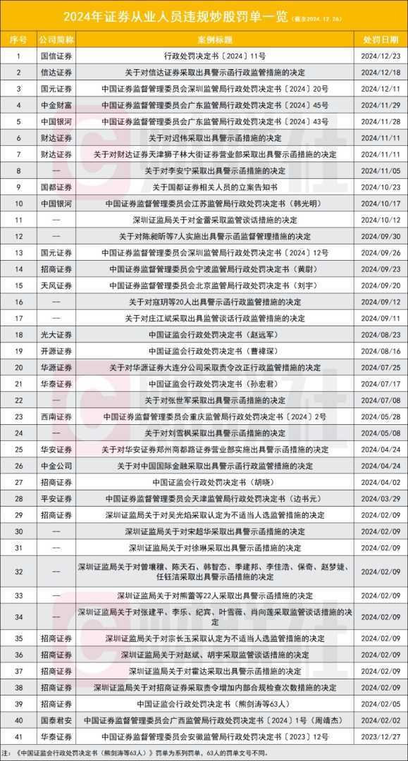 即便在年末,监管力度依然不减。例如,12月26日,新疆证监局对国信证券新疆分公司的张洋洋开出罚单,因其借他人名义持有、买卖股票,责令其依法处理非法持有的股票,并处罚款4万元。这只是众多罚单中的一张,却足以震慑那些心存侥幸的从业人员。