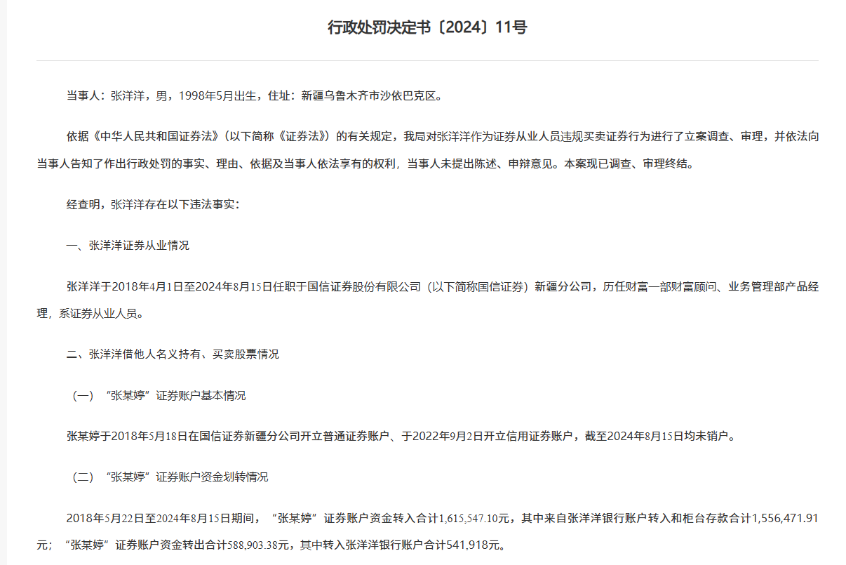 岁末,一起典型的从业人员违规炒股案浮出水面。张洋洋在国信证券新疆分公司任职期间,违规控制使用他人证券账户交易股票,持续时间长达6年,且在违规的同时出现较大交易亏损,账面亏损近72万元。这一案例再次提醒我们,违规炒股不仅违法违规,还会给个人带来巨大的经济损失。